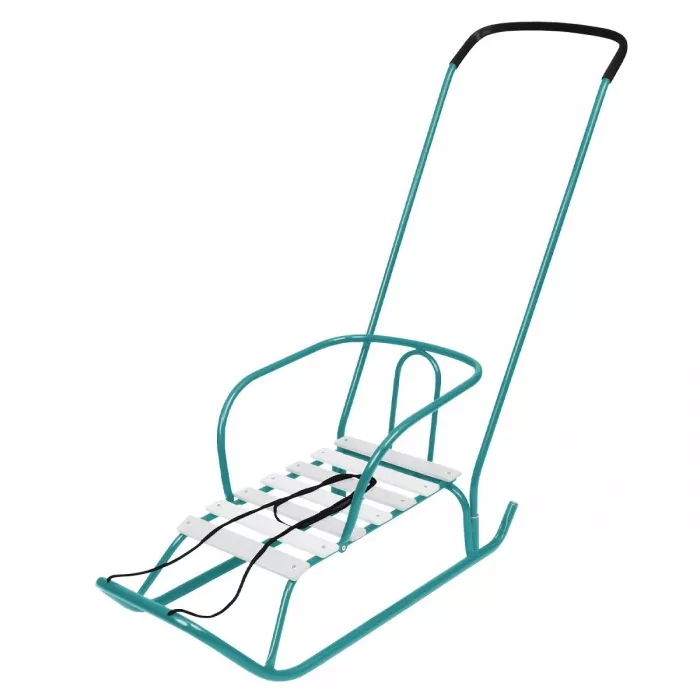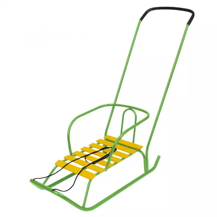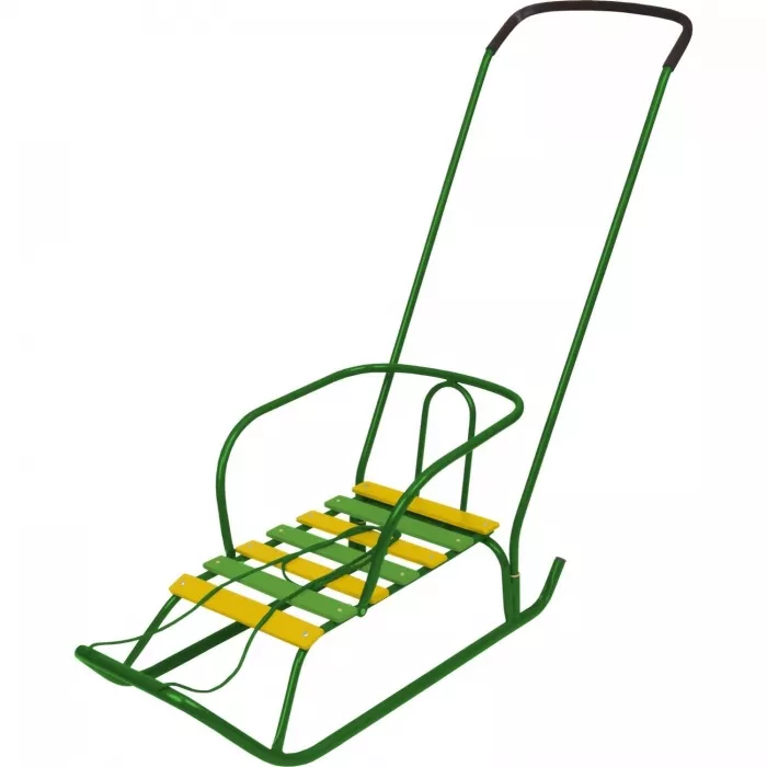 Санки детские Ветерок 2 с ТОЛКАТЕЛЕМ (1 положение) ЗЕЛЕНЫЙ