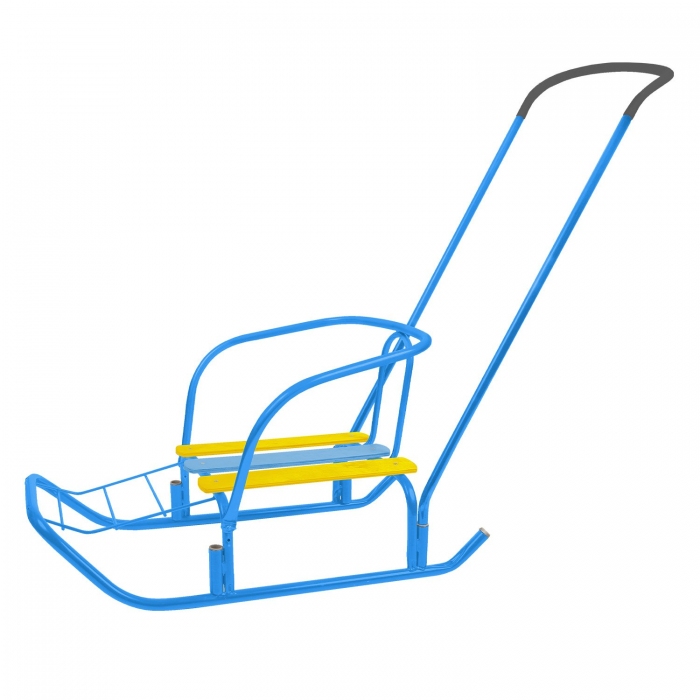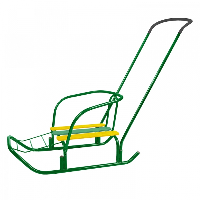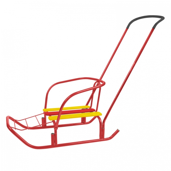 Ветерок 7 с толкателем - санки с ручкой-толкателем для катания и перевозки детей. Материал: - каркас - металл; - сидение - деревянные рейки.