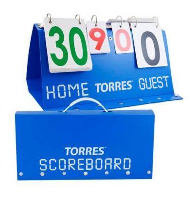 Счетчик для волейбола "TORRES". Предназначен для отображения счета по партиям (до 9), счета в партии (до 30). Складной, фиксация - на кнопках, без дополнительного стопора. Полностью изготовлен из пластика, кольца - металл. Листы с с обеих сторон напечатанными цифрами из ламинированного картона. Пластиковая ручка для переноски. Размеры счетчика: длина 40 см, ширина 19 см (в разложенном виде), высота 19 см.