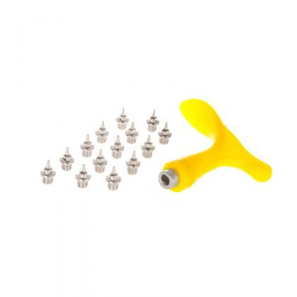 Легкие нейтральные шиповки подходят как для кросса, так и простых тренировок по бездорожью в любую погоду.Модель содержит 6 массивных металлических шипов на резьбе в передней части. Они надежно удерживают стопу на мягком грунте, обеспечивая хорошее сцепление, как на подъемах, так и на спусках. Не допуская скольжения позволяют твердо и уверенно отталкиваться при старте и ускорениях.Петелька, пришитая сзади, позволяет легко подвешивать шиповки для просушки после использования.