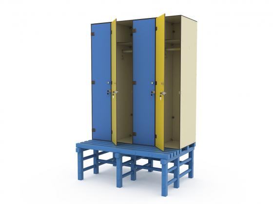 Шкаф четырехсекционный на скамье-подставке(300 мм места для сидения)