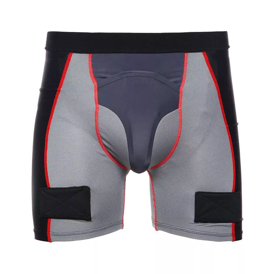 Шорты компрессионные подросткоые "BIG BOY Comfort Line" отличается высокой эластичностью и плотной, удобной посадкой, благодаря анатомическому крою, не сковывает движений. Трикотажный материал, из которого пошита данная модель, состоит из 80% нейлона, 20% эластана. Шорты оказывают компрессионное воздействие, что снижает усталость мышц, улучшает кровоток, уменьшает вибрацию мышц при активном движении, а так же сокращает восстановительный период после интенсивных, физических нагрузок. Материал шорт, эффективно отводит от тела влагу и тепло и способствует охлаждению тела. Плоские швы хорошо тянуться, не травмируют кожный покров и практически не ощущаются при носке изделия. Защитная чаша, используемая в данной модели, выполнена из жесткого ABS пластика, который способствует равномерному распределению силы удара и снижению болевых ощущений. Чаша имеет мягкую окантовку по всему периметру, которая поглощает остаточное воздействие удара, обеспечивая плотную и безопасную посадку защитного элемента, исключая натирание и травмирование мягких тканей. Вентиляционные отверстия в чаше создают необходимый приток воздуха. Липучки, имеющиеся на штанинах в области бедер спереди и сзади, используются для фиксации гамаш.