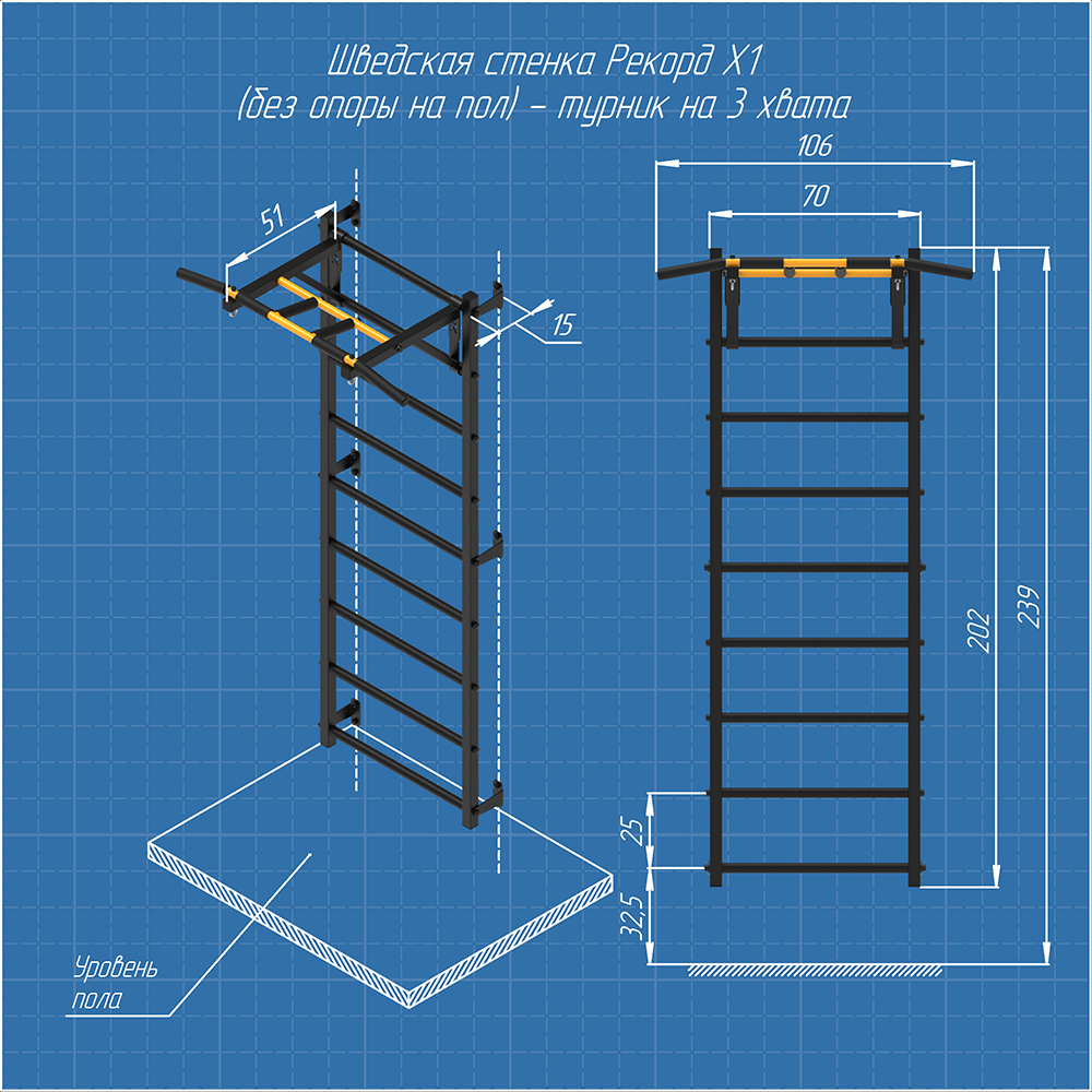 Металлическая стенка с профилем 40*40*2 мм , металлические перекладины покрыты противоскользящим ПВХ слоем. Усиленная конструкция с уникальными кронштейнами "Рекорд Х" (6 кронштейнов на 2 болта, всего 12 болт+дюбель, в комплекте поставки). . Максимальная нагрузка до 450 кг. Цвет: белый глянец / черный матовый
