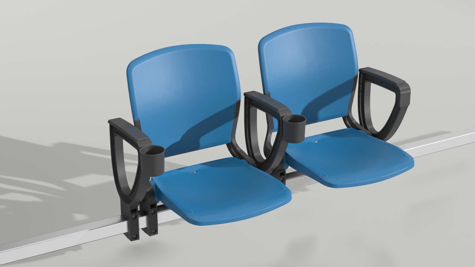 Предлагаемый нами тип металлоконструкции устанавливается по всему объекту. Затем независимые модули сидений можно установить на направляющую в течении нескольких секунд. Само сидение крепится к металлической направляющей с помощью простой системы зажимов. Это позволяет сначала равномерно разнести сидения, а затем закреплены окончательно.