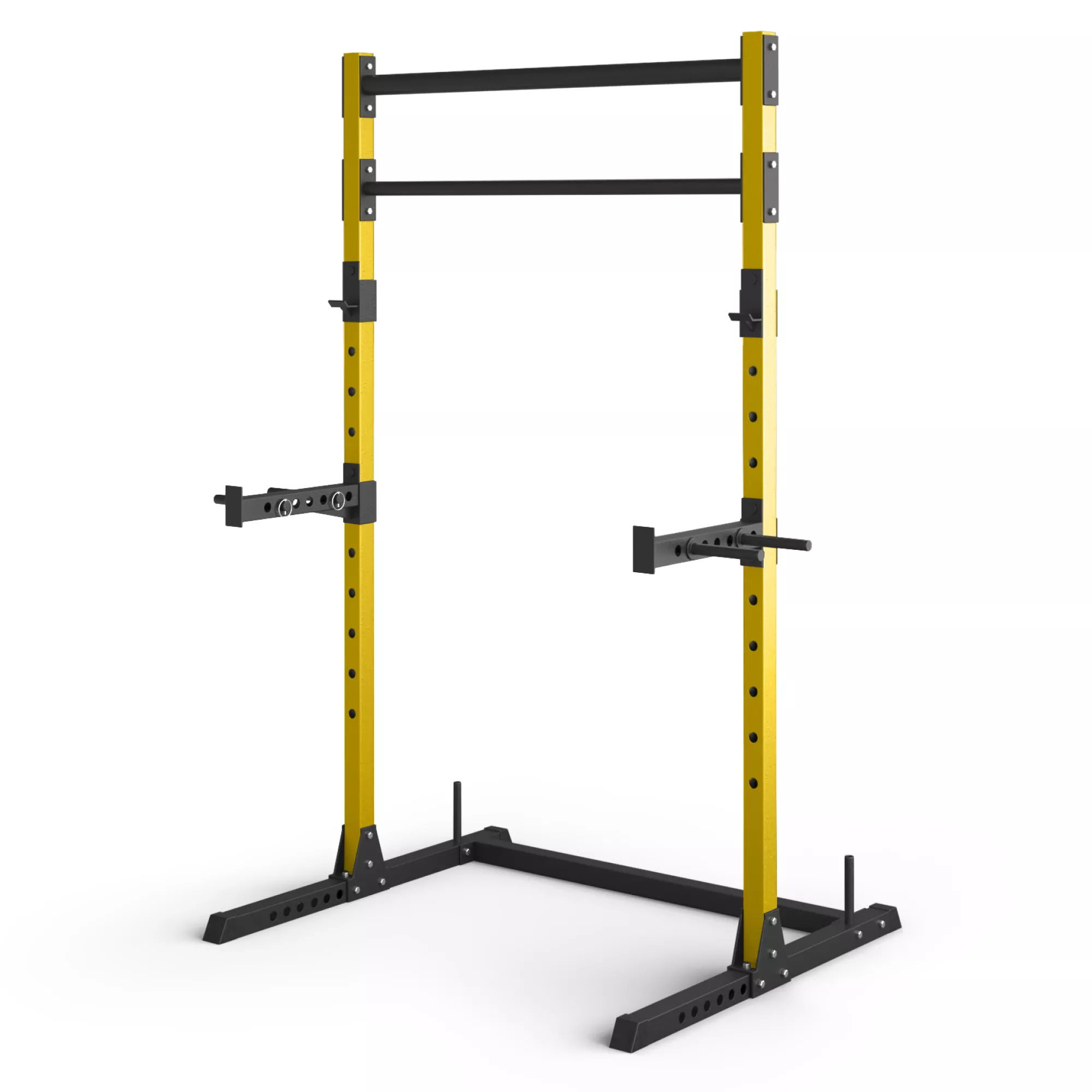 4. Универсальность: турник в конструкции силовой рамы позволит расширить количество упражнений - приседания со штангой, выпады со штангой, становая тяга, подтягивания. Более того, она совместима с большинством типов тренировочных скамей (не входят в комплект), что позволяет осуществлять разнообразные упражнения, включая классический жим лежа.