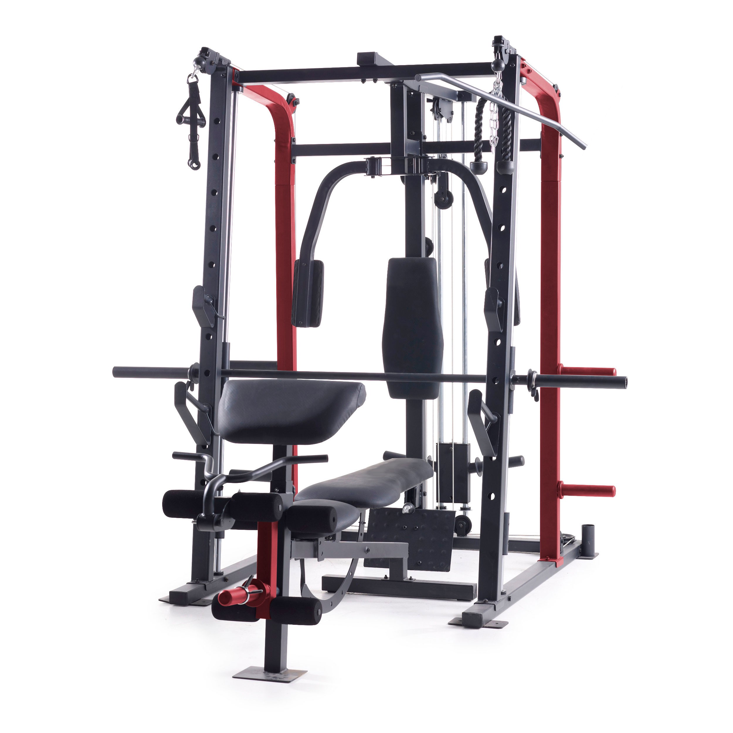 Силовая станция со скамьей и опциями DFC 8500 (D3023B + D3022SM) — это премиальное решение для домашнего фитнеса, объединяющее в себе функциональность мультистанции и качественную скамью для полноценной тренировки всего тела. В комплект входит популярная Машина Смита DFC D3022SM и скамья с опциями DFC D3023B, которая оснащена партой для бицепса, рычагом для сгибания и разгибания ног, а также регулируемой спинкой. Прочная рама из стального профиля 70×50 мм и дополнительные кронштейны для штанги позволяют выполнять широкий спектр упражнений — приседания, жимы, тяги и другие силовые движения. В комплекте идут гриф, рукоятки, ремень для лодыжки, гибкая тяга для трицепса и замки-пружины для фиксации дисков. Используются диски диаметром 51 мм (опция, приобретаются отдельно). Регулируемые по высоте кронштейны и предохранители обеспечивают безопасность и комфорт. Встроенные держатели для дисков позволяют удобно хранить груз. Размеры тренажера — 175×212×216 см, вес — 169 кг. Идеальный тренажер для тех, кто хочет добиться максимальных результатов в домашних условиях.