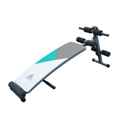 Скамья для пресса DFC. Тренажер предназначен для домашнего использования. Изогнутая поверхность. Удобные валики. Регулируемый угол наклона скамьи. В комплекте две ручки по краям тренажера для помощи в подъеме во время тренировки. Надежная стальная конструкция из профиля размером 38х38 мм.