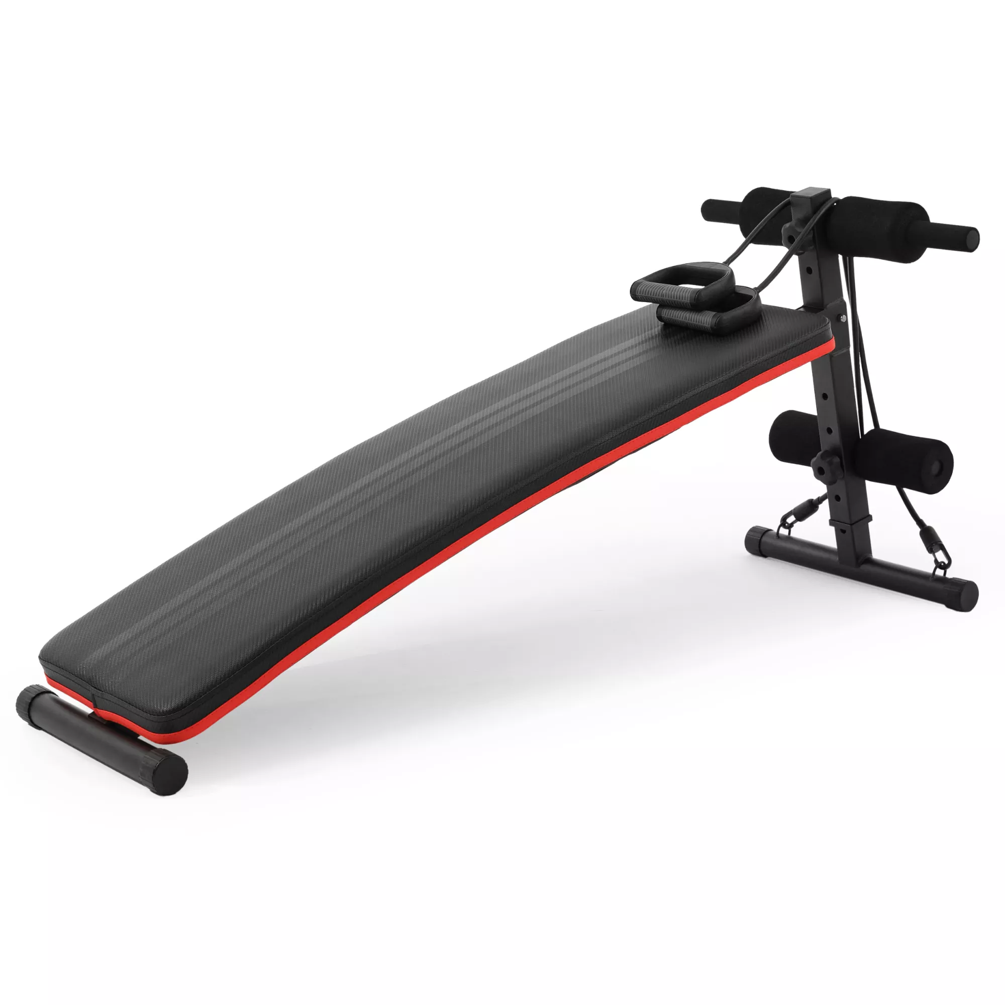 Тренажер для пресса изогнутой формы с 2 эспандерами оснащен удобным сиденьем и подушкой для спины, что обеспечивает комфортную работу в течение длительного времени. Она также имеет 5 регулировок угла наклона, что позволяет настраивать интенсивность тренировки в зависимости от вашего уровня подготовки. Благодаря дополнительным упорам, тренажер можно использовать как скамью для отжиманий.