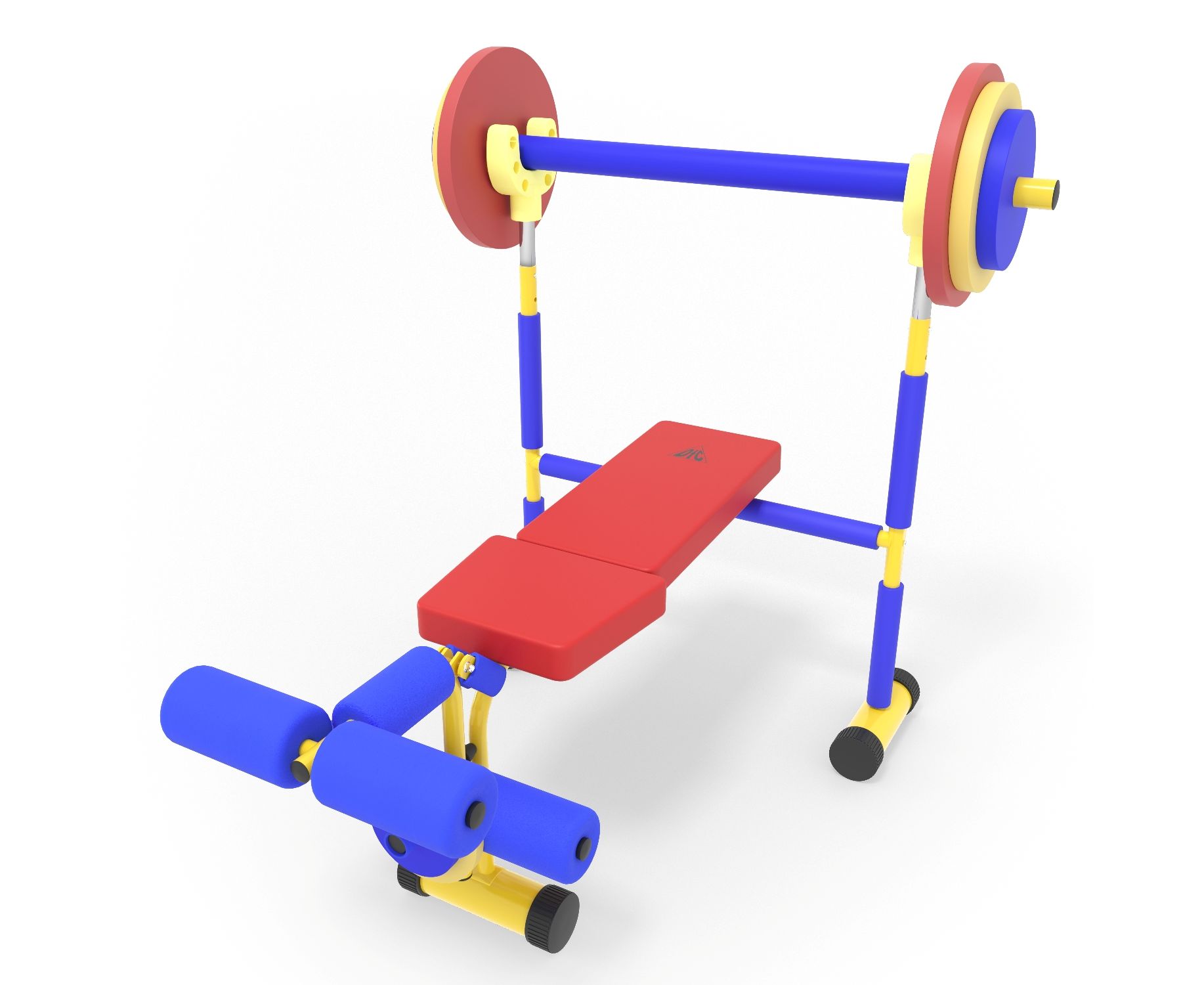 Легкая в сборке и транспортировке, эта скамья идеально подходит для домашних занятий фитнесом. В комплекте идет штанга и 8 весовых пластин разной массы, что позволяет детям безопасно выполнять подъемы штанги и жим ногами, укрепляя мышцы и развивая спортивные навыки.