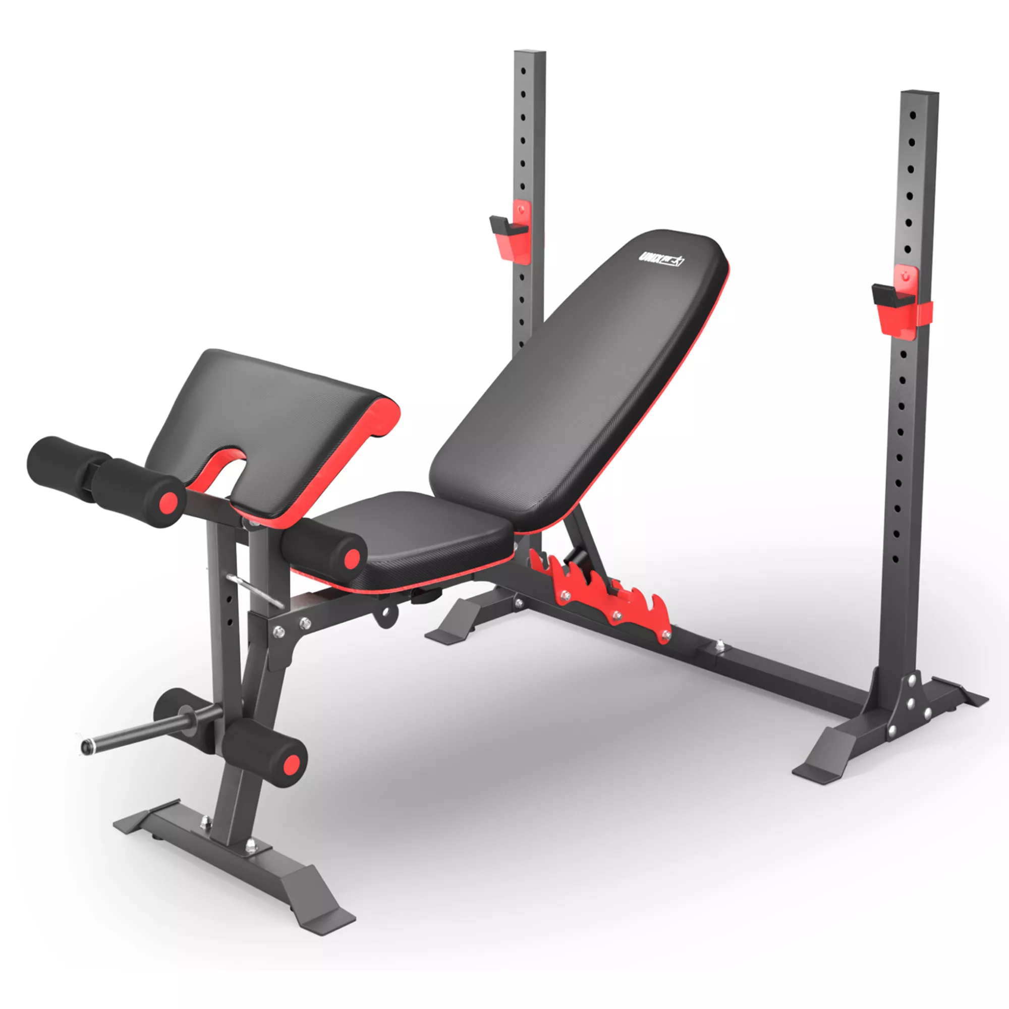 Изготовленная из усиленного стального профиля, спортивная скамья для фитнеса обладает высокой прочностью и устойчивостью. Регулируемые по высоте стойки для штанги имеют усиленные крепления, что гарантирует безопасность при выполнении упражнений с тяжелыми весами. Вы можете быть уверены, что тренировка пройдет без риска травм. Встроенные фиксаторы обеспечивают надежную поддержку штанги во время выполнения упражнений.
