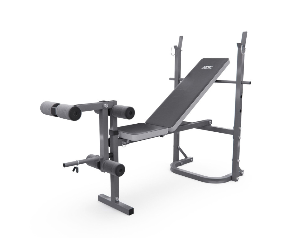 Идеальный тренажер для домашних занятий — скамья для жима DFC D701! Эта модель отлично подойдет для выполнения упражнений со штангой, благодаря регулируемому углу наклона на 4 уровня и стойкам, выдерживающим нагрузку до 100 кг. Ширина внутреннего расстояния между стойками составляет 51 см, что обеспечивает удобство и безопасность при выполнении жима и других силовых упражнений. Максимальная общая нагрузка на тренажер — 150 кг, включая вес пользователя и грузовые пластины. В комплект входят упругие валики диаметром 7 см и длиной 12 см, обеспечивающие комфортную поддержку во время тренировок. Общая конструкция легкая и компактная, а наличие упора для пресса и нагрузки для жима ногами до 80 кг делают эту скамью универсальным решением для домашнего спортзала.