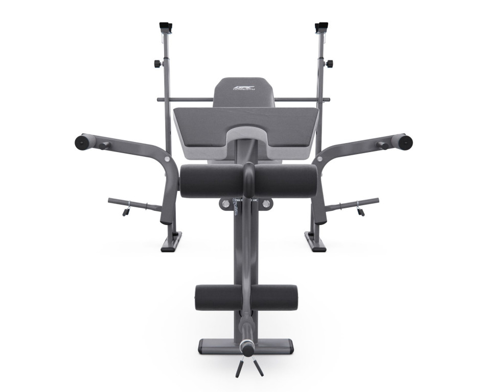 Скамья для жима DFC D702 PRO (широкий хват, с партой для бицепса) — это универсальный и надежный тренажер, идеально подходящий для домашних залов. Благодаря регулировке высоты на 4 уровня (от 102 до 111 см) и регулируемой спинке на 3 уровня, вы можете адаптировать тренажер под свой рост и уровень подготовки, выполняя упражнения на грудь, спину, плечи, бицепсы и трицепсы. Расстояние между стойками — 76 см, что позволяет использовать большинство видов штанг и грифов. Максимальная нагрузка — 180 кг, включая вес пользователя и грузовые диски, что обеспечивает безопасность и эффективность тренировок. В комплект входят съемные рычаги для валиков с нагрузкой до 80 кг и ручной рычаг — до 40 кг, а размеры сиденья (30 × 28 × 4 см) и спинки (74,5 × 28 × 4 см) гарантируют комфорт и поддержку. Конструкция выполнена из прочного стального профиля, а возможность регулировки по высоте позволяет полноценно прорабатывать все группы мышц в домашних условиях.