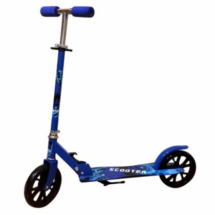 Описание: Скутер синий сверхбольшие колеса 20 см, японский полиуретан, мягкие ручки. Состав: алюминий. Подшипник ABEC-7 Допустимая нагрузка до 100 кг, Класс Люкс.