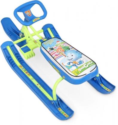 Снегокат предназначен для перевозки детей от 7 до 12 лет по плотному снегу или льду, катанию с горок. Имеет сварную конструкцию из стальных труб, пластмассовые лыжи и мягкое сиденье с рисунком. Усиленный тормоз эффективен на обледенелой поверхности. Поставляется в разобранном виде. Комплект наклеек на снегокат в подарок!