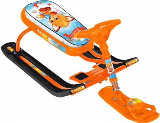 Снегокат предназначен для перевозки детей от 7 до 12 лет по плотному снегу или льду, катанию с горок. Имеет сварную конструкцию из стальных труб, пластмассовые лыжи и мягкое удлиненное сиденье, обтянутое искусственной кожей с рисунком. Буксировочный трос с автоматической намоткой. Усиленный тормоз эффективен на обледенелой поверхности. Поставляется в разобранном виде. Комплект наклеек на снегокат в подарок!