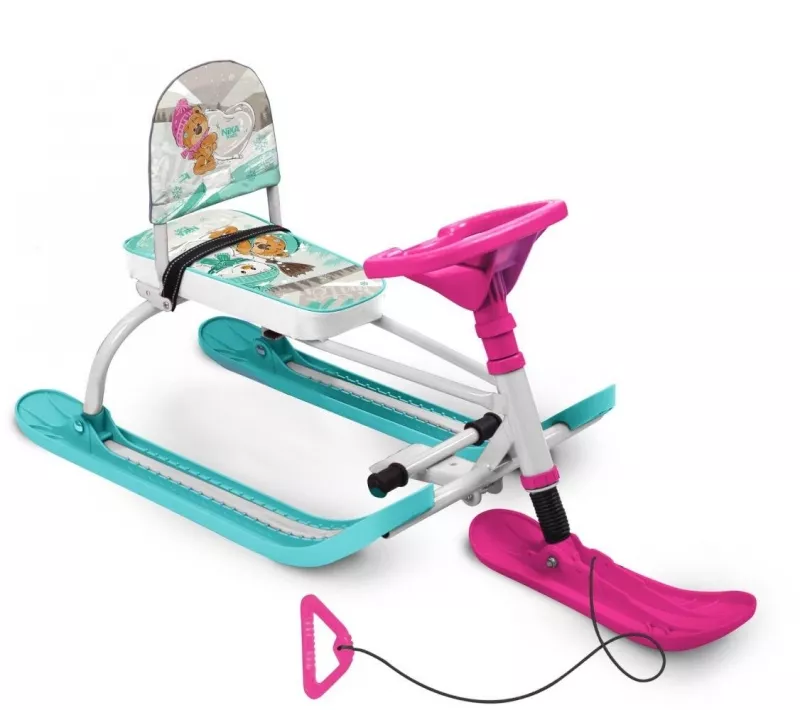 Снегокат TWINY 1+ МИНИ (ЗАБАВНЫЕ МЕДВЕЖАТА) рама белая СО СПИНКОЙ (упак. 1 шт.)