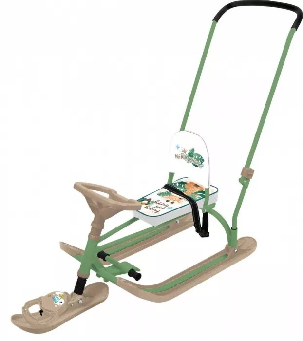 Снегокат TWINY 2+ МИНИ (ЖИРАФИК) рама зеленая СО СПИНКОЙ И РУЧКОЙ-ТОЛКАТЕЛЕМ (упак. 1 шт.)