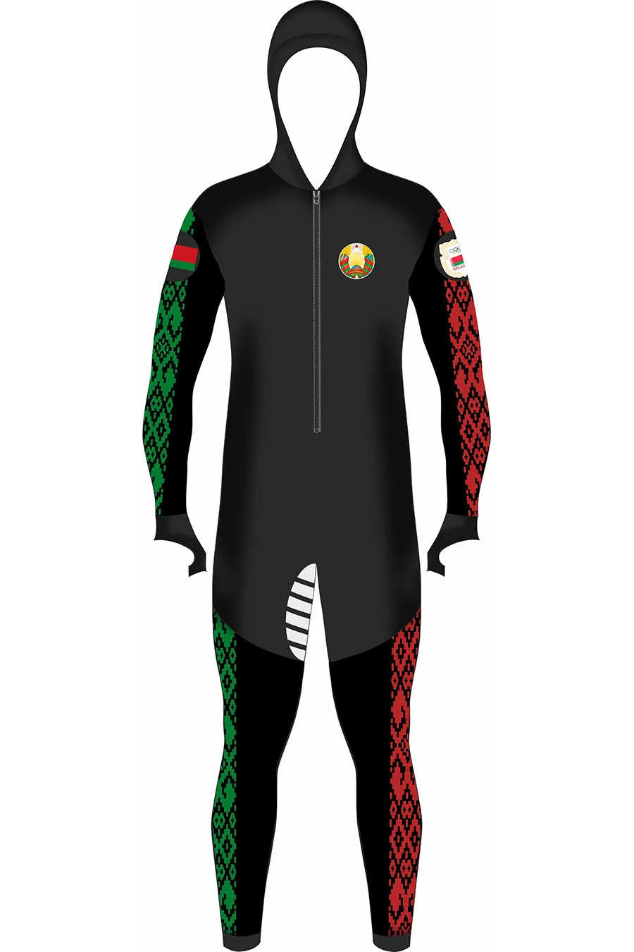 В производстве соревновательного комбинезона используется прорезиненная ткань и «бифлекс», итальянской фабрики CARVICO.