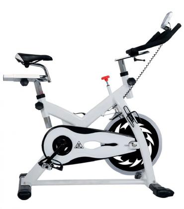 Вертикальный механический спин-байк с ременным типом привода и колодочной системой нагружения. Изменение нагрузки с помощью удобной рукоятки на корпусе тренажера. Предусмотрен экстренный тормоз. Спортивное сидение регулируется в вертикальной и горизонтальной плоскости, и позволяют подобрать удобную посадку для тренировки. Питание компьютера от батареек (тип ААА, 2 шт). На раме установлен держатель для бутылки. Для перемещения тренажера в помещении установлены колеса. Фиксация ног в педалях с помощью резиновых ремней с регулировкой.