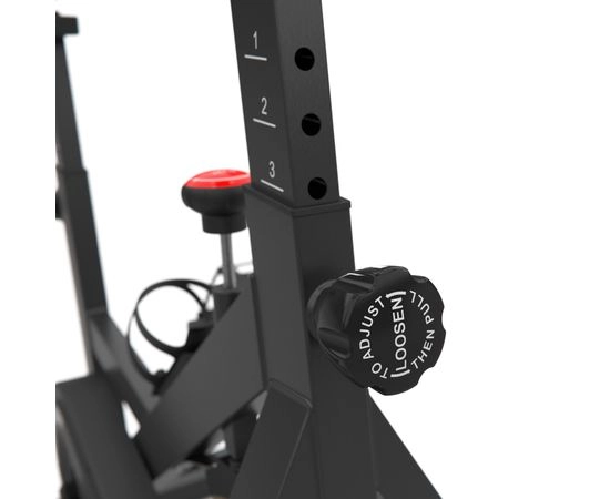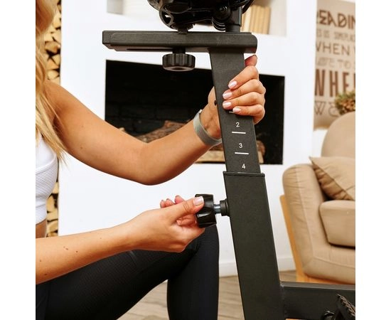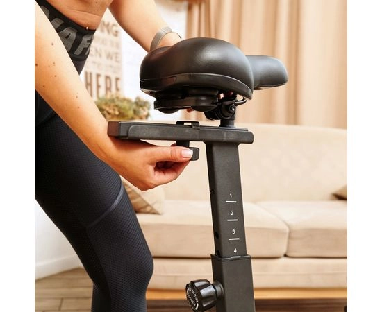 Сиденье спин-байка регулируется по горизонтали на 2 уровня и вертикали на 7 уровней от 89 до 107 см. Руль также регулируется на 5 уровней по высоте, что позволяет настроить спин-байк на ваш размер и удобство.