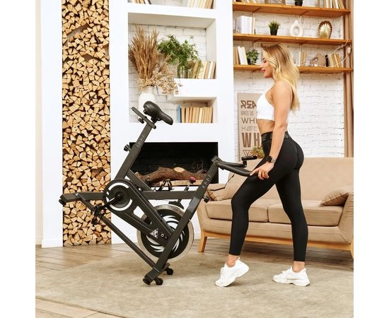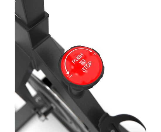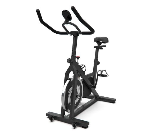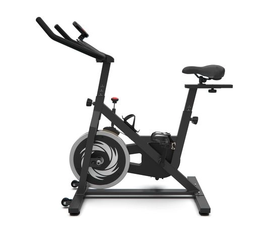 Спин-байк оснащен маховиком весом 15 кг и колодочной системой нагрузки. Регулировка нагрузки происходит механически и использует бесступенчатую систему с множеством уровней нагрузки. Таким образом, вы можете выбрать подходящий уровень нагрузки для своих потребностей.