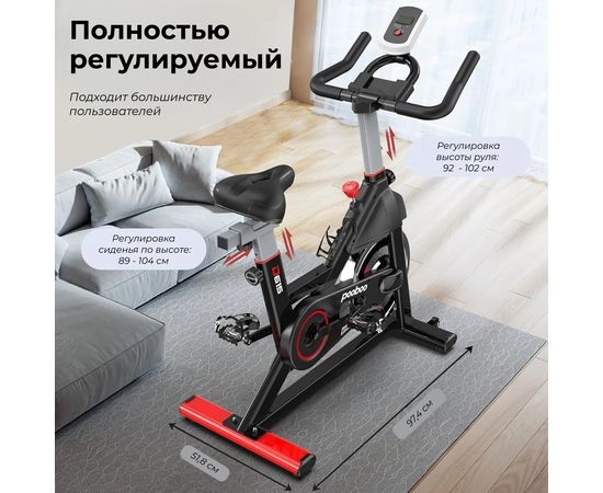 Спин-байк DFC Pooboo D615 чёрно-красного цвета — это современный тренажер кардио, который идеально подойдёт для регулярных домашних тренировок. Благодаря своей универсальности и расширенной системе настроек, он эффективно заменит занятия в фитнес-зале.