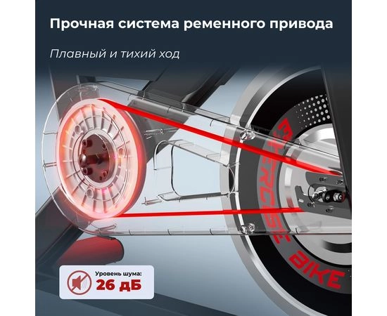 Спин-байк рассчитан на пользователей весом до 120 кг. Модель оснащёна магнитной системой нагрузки с инерционным весом маховика 15 кг и механической регулировкой. Благодаря бесступенчатой системе изменения сопротивления, вы можете плавно повышать или снижать уровень сложности, выбирая оптимальный режим для кардиотренировки, сжигания жира или развития выносливости.