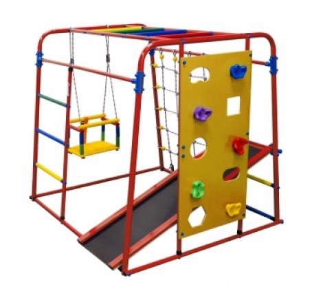 Комплектация: скалодром с зацепами, сетка-лаз, ламинированная горка, качель, рукоход