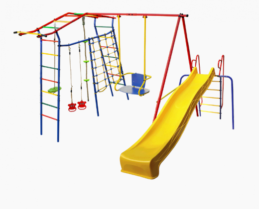 Комплектация: турник, канат, кольца,лиана, качели на подшипниках со спинкой, стойка с сеткой, горка