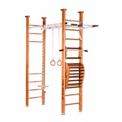 Комплектация: шведские стенки разборные, рукоход, турник мобильный с неопреновыми ручками, кольца гимнастические деревянные, тарзанка, тренажер Vinsere
