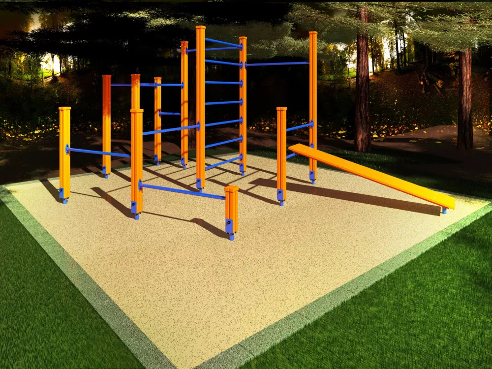 | Включает | Шведская стенка, 2 турника разной высоты, скамья н |