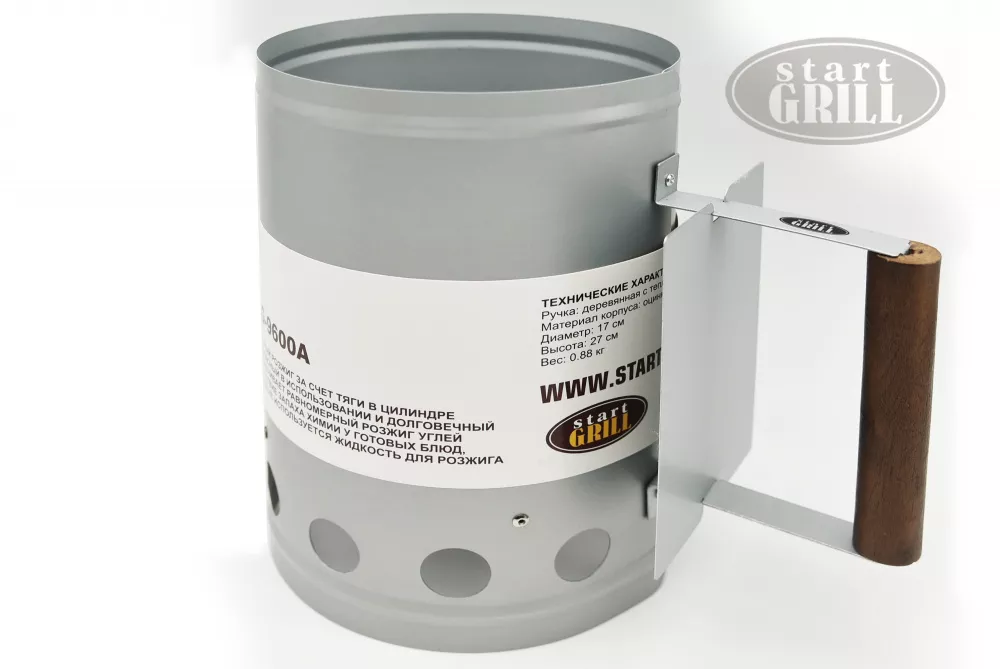 Стартер для розжига углей от Start Grill используется для разжигания угля. Благодаря ему угли разгораются быстрее и равномернее, чем в жаровне или мангале. Отверстия на дне и в нижней части стартера, а также его открытый верх, обеспечивают оптимальную тягу стартера, позволяющую быстро и равномерно разогреть угли. Деревянная ручка с теплозащитой защищает ручку стартера от перегрева, а руку - от ожога.