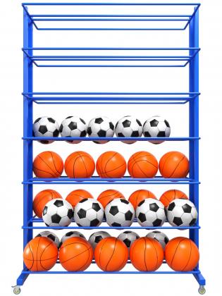 Стойка - стеллаж для хранения и перемещения мячей. Изготовлен из профильных труб 25х25х1,5 мм, легко перемещается, т.к. имеет ролики с фиксаторами.