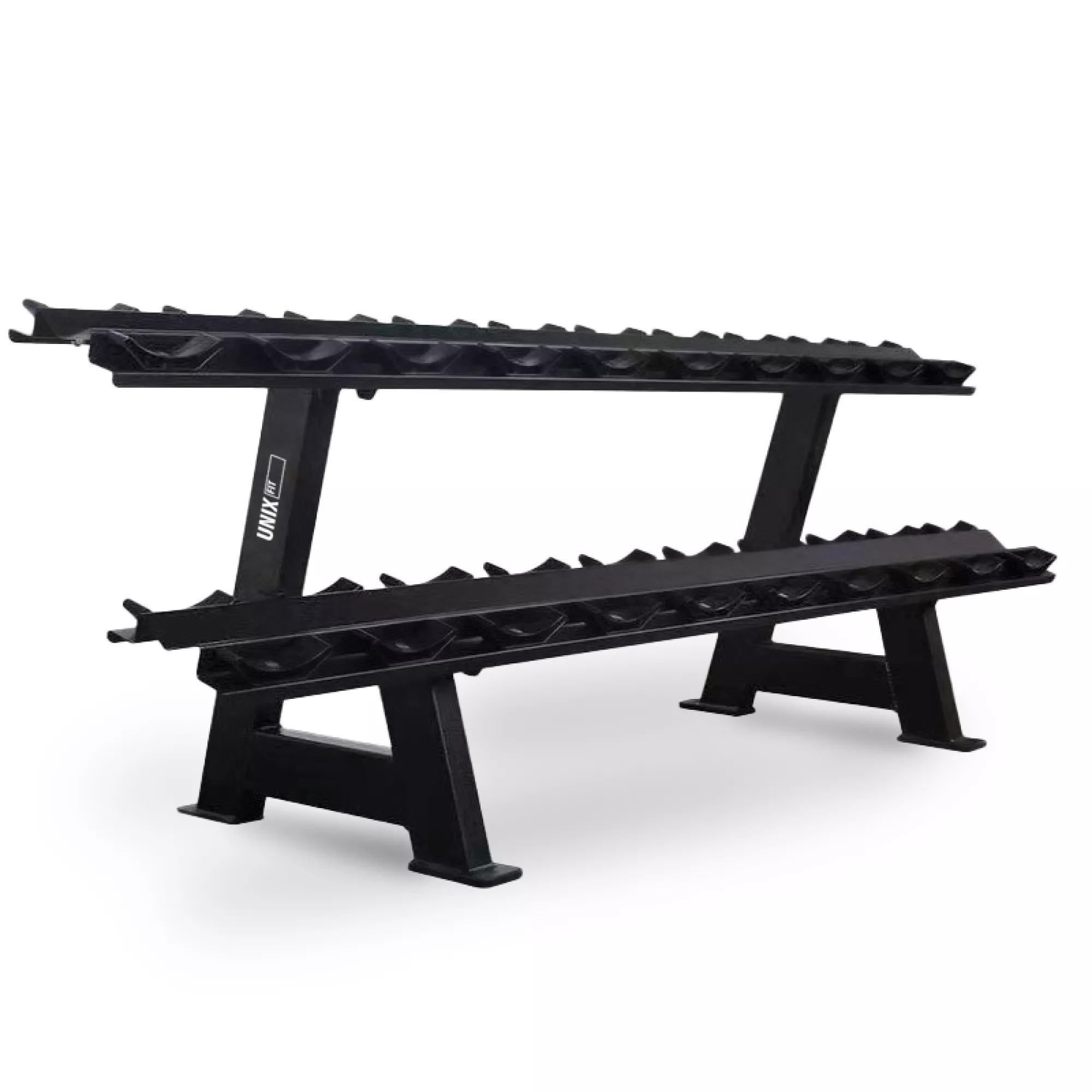 Подставка для гантелей изготовлена из особопрочной стали Q235, которая используется для производства деталей с большим уровнем нагрузки, например для строительства мостов и зданий. Такая конструкция с толщиной стали 1,8 мм обеспечивает надежное и безопасное хранение гантелей различного веса, защищая их от повреждений, сохраняя порядок в тренировочном пространстве. Двухрядная конструкция с противоскользящими ножками обеспечивает удобный доступ к гантелям во время тренировок.