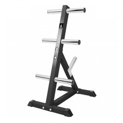 Стойка DFC для хранения дисков. Покрашена в черный цвет. Стойка выполнена в профессиональном студийном качестве. Позволяет создать благоприятную психологическую атмосферу во время тренировки - все диски идеально отсортированы. Семь посадочных мест (втулок) для хранения дисков с посадочным диаметром 51 мм. Длина каждой втулки 20 см. Втулки расположены на высоте 32, 45, 70 и 100 см от пола. Общая нагрузка на стойку не должна превышать 350 кг. Каждая втулка выдерживает не более 60 кг. Резиновые ножки для защиты пола от царапин и устойчивости всей конструкции.