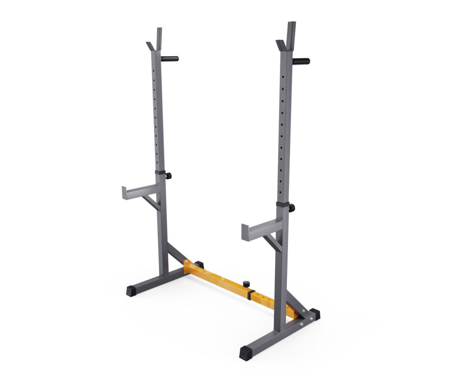 Стойка под штангу для жима с подстраховкой DFC Y-GYM TF-57 — это стильный и многофункциональный тренажер для домашнего спортзала, который сочетает в себе современный дизайн и надежность. Выполненная в контрастных цветах — черном и желтом — эта стойка идеально впишется в любой интерьер и станет стильным акцентом вашего домашнего спортзала. Основание из высокопрочной профильной трубы 50×50×1,5 мм выдерживает динамическую нагрузку до 150 кг, что позволяет выполнять широкий спектр упражнений: приседания, становую тягу, жим лежа и другие. Регулировка высоты держателей под штангу осуществляется легко и без инструментов при помощи специальной ручки, а диапазон регулировки — 11 уровней от 102 до 162 см — позволяет адаптировать тренажер под любой рост. Ширина стойки для жима регулируется на 8 уровнях от 78 до 113 см с шагом 5 см, что обеспечивает комфорт и индивидуальный подход. Ножки с антискользящими поверхностями гарантируют устойчивость и защиту пола. Эта стойка — отличный выбор для тех, кто ценит эстетику, безопасность и эффективность домашних тренировок.