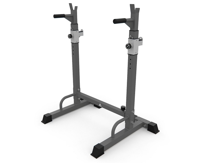 Стойка под штангу с брусьями DFC DS10 — это универсальный и надежный тренажер, идеально подходящий для домашнего спортзала. Благодаря прочной стальной раме и широкому диапазону регулировок, он позволяет выполнять полный спектр силовых упражнений: приседания, становые тяги, жим лежа, а также упражнения с собственным весом — отжимания на брусьях и от пола. Высота и ширина стойки легко регулируются без использования инструментов, что делает тренажер максимально удобным и адаптированным под любые параметры. Внутренняя ширина регулируется в диапазоне от 54 до 99 см, а уровни регулировки — 12 на верхних ручках и 8 на нижних стойках. Максимальная нагрузка на кронштейны для штанги и брусья — 100 кг, а подвижный держатель рассчитан на вес до 50 кг. Надежность, универсальность и компактность делают этот тренажер отличным выбором для развития мышц груди, рук и всего тела в домашних условиях.