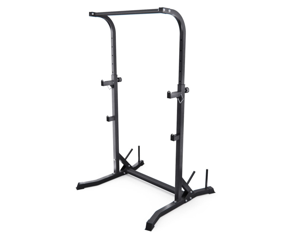 Тренажер DFC DQ004 — универсальное устройство для укрепления мышц, которое подходит для пользователей с ростом от 150 до 190 см и весом до 120 кг. Он включает в себя стойки для штанги, турник и регулируемую скамью, что позволяет выполнять широкий спектр упражнений на мышцы рук, плечевого пояса, спины и пресса. Широкий турник длиной 90 см обеспечивает разнообразные подтягивания, позволяя акцентировать нагрузку на спине. Регулируемая по высоте конструкция — от 142 до 223 см — с 9 уровнями регулировки шагом 9 см позволяет адаптировать тренажер под любой рост и уровень тренированности. Расстояние между внутренними держателями под штангу — 91 см, а между внешними — 101 см, что подходит для большинства грифов и дисков диаметром 26 мм. Конструкция из профиля 50×50×1,2 мм обеспечивает высокую надежность и долговечность. Тренажер сочетает в себе функциональность и стильный дизайн, делая домашние тренировки максимально эффективными.
