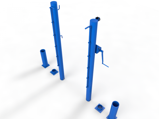 Стойки для большого тенниса устанавливаются преимущественно на открытых площадках. Изготовлены из стальной трубы, наружный диаметр 76 мм, с толщиной стенки 3,5 мм.