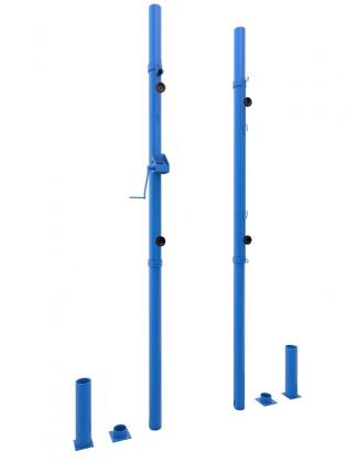 Стойки предназначены для волейбола, а также могут использоваться для бадминтона и тенниса. Устанавливаются преимущественно на открытых площадках. В комплект волейбольных стоек входят стаканы (в них устанавливаются стойки) и крышки, что позволяет при необходимости убрать стойки и освободить площадку. Поверхность окрашена полимерным порошковым покрытием в камере полимеризации.