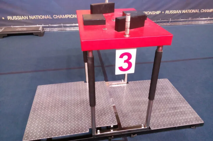 Модель «Steel Arm» — профессиональный стол для проведения соревнований по армрестлингу любого уровня (адаптирован к мировым (WAF) и европейским (EAF) стандартам), рама выполнена из НЕРЖАВЕЮЩЕЙ СТАЛИ, разборный, покрышка — ПВХ с подкладкой, мягкая накладка под живот по длине столешницы, переставляемые подлокотники и боковые подушки, порошковая покраска рамы, никелированные втулки и рукоятки с профессиональной накаткой, накладки резиновые на стойки, эмблема ФАР по центру стола.