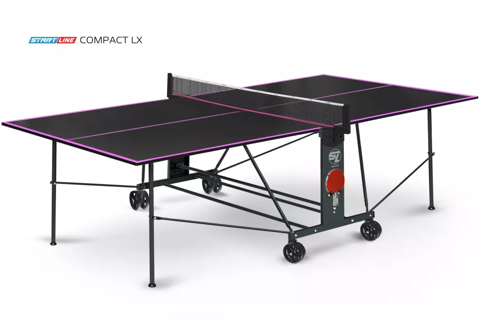 Главное отличие модели Compact-LX Black - сочетание стильного черного цвета столешницы и контрастной фиолетовой разметки. Теннисный стол Compact-LX Black станет центральной фигурой любого игрового интерьера.