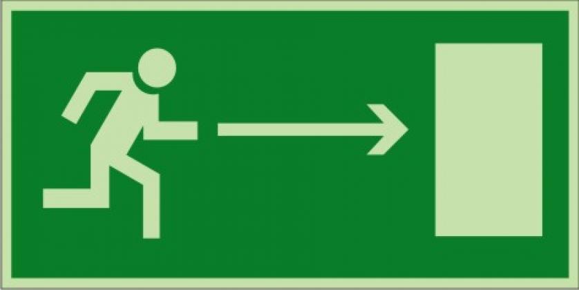 Табличка Е03 (Направление к эвакуационному выходу направо)