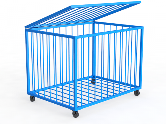 Тележка для перемещения и хранения мячей. Изготовлена из профильных труб 25х25х1,5 мм и металлических прутьев. Окрашена прочной порошковой краской в камере полимеризации.
