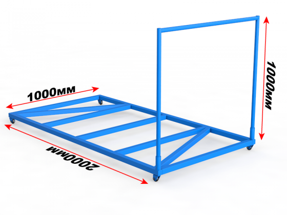 Тележка для перевозки матов. Выполнена из профиля 40х40 мм и имеет съемную ручку.