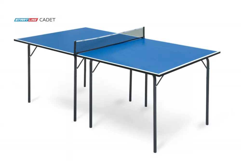 Теннисный стол Cadet прекрасно подойдет для офиса или дома. Стол имеет небольшие габариты и не занимает много места. Стол очень прост в установке, и при необходимости его всегда можно сложить. Столешница модели Cadet сделана из прочного материала ЛДСП и покрыта меламином, что предотвращает появление трещин и сколов. Кромка стола выполнена из пвх толщиной 45 мм, что также защищает стол от повреждений. Сетка идет в комплекте к этой модели.