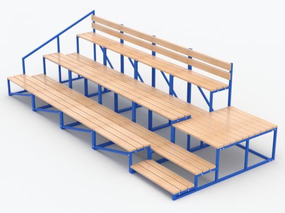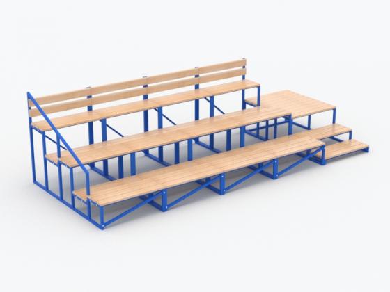 Трибуны трёхрядные модульные представляют собой сборно-разборную конструкцию. Трибуна рассчитана под соответствующие силовые нагрузки согласно нормативным документам. В конструкции трибун предусмотрено разделение на отдельные секции длиной 1200 мм, с использованием отдельно друг от друга.