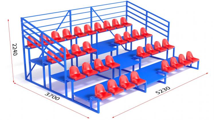 Трибуна разборная четырехрядная с ограждением на 34 места. Собирается с помощью болтовых соединений. Не требует специального оборудования.