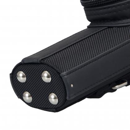 Внутренняя часть тубуса обшита мягким флисом.ФурнитураНа дне с внешней стороны тубуса имеются металлические ножки. Вы можете ставить тубус на пол, не боясь испачкать материал. Благодаря ножкам, чехол устойчив в вертикальном положении.Дополнительные удобстваДля комфортной носки предусмотрена ручка и наплечный ремень с регулировкой длины.