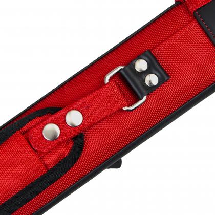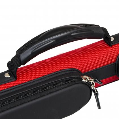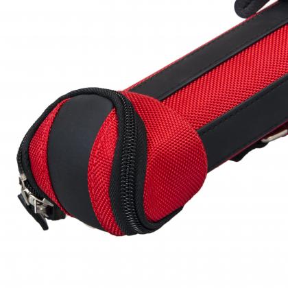 Есть ручка сбоку и наплечный ремень с регулировкой длины. На ремне есть специальная вставка для комфортной носки на плече. Каждая часть кия хранится в отдельном отсеке. С внешней стороны имеются карманы для аксессуаров и удлинителя. Большой карман внутри снабжен дополнительной молнией для надежной фиксации.